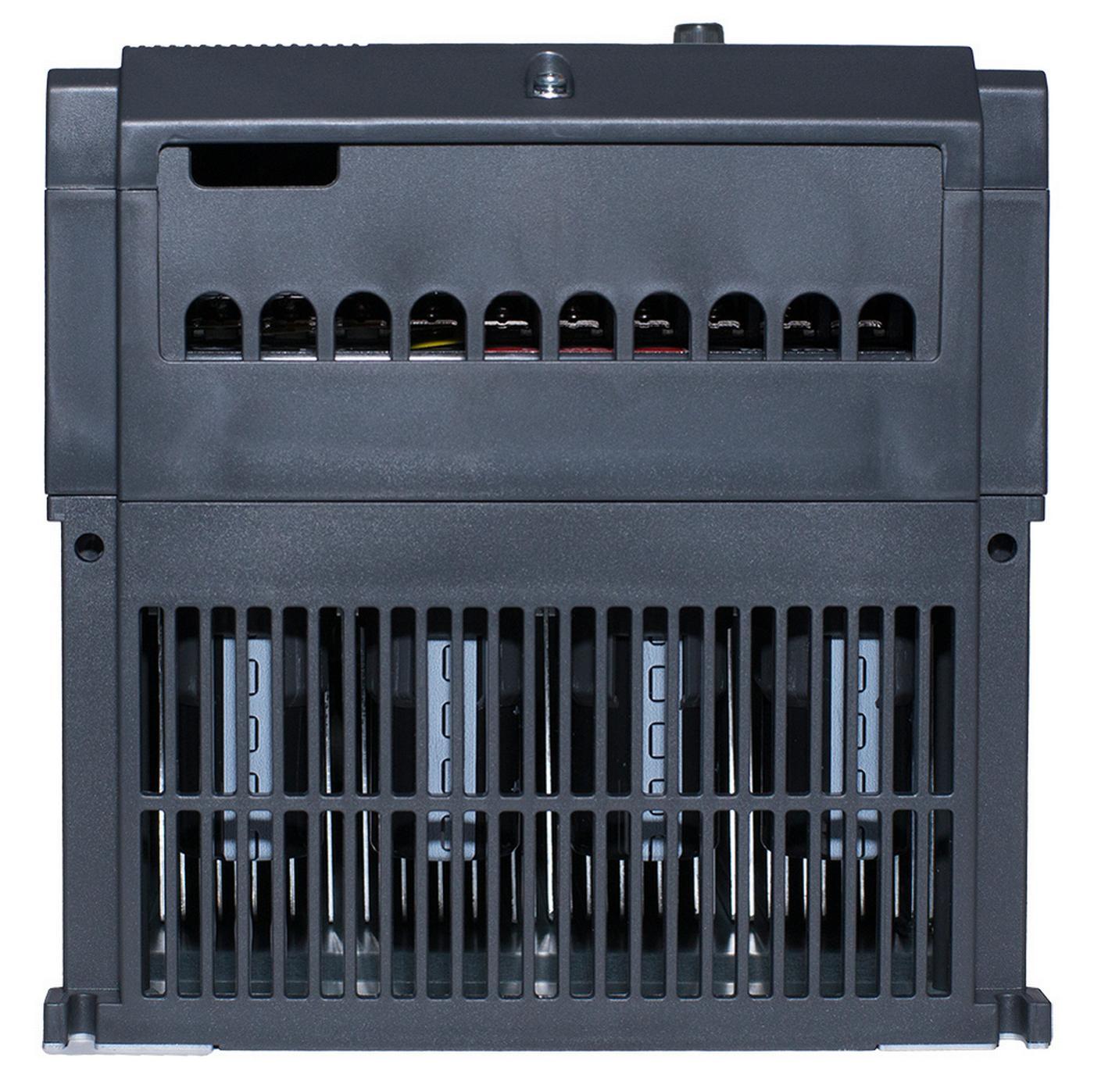 • Входи / виходи сигналів управління: 7 програмованих цифрових клем серед яких 1 високошвидкісна імпульсна клема (до 100кГц), 3 програмованих аналогових входи 0…+10В або 0…20мА, 2 цифрових програмованих вихіди з відкритим колектором серед яких 1 високочастотний імпульсний вихід (100кГц), 2 релейних програмованих виходи, 2 програмованих аналогових виходи 0…+10В або 0…20мА, RS485 (Modbus RTU)
